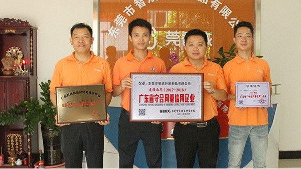 近日,經東莞市市場監督管理局考核,智成纖維再次榮獲廣東省2018年度“守合同重信用企業”稱號,這是智成纖維連續2年獲此殊榮。